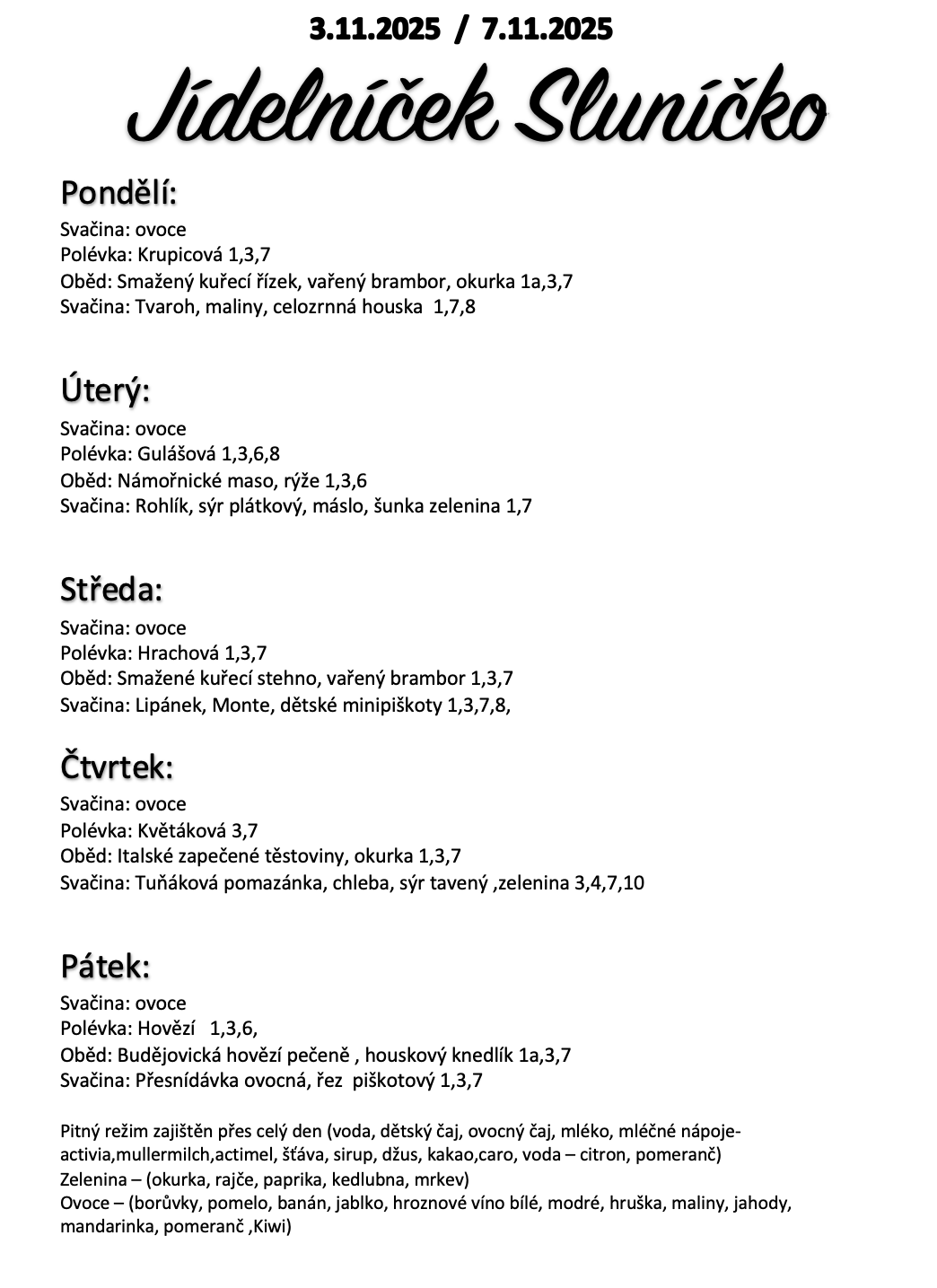 Vyúčtování stravného za konkrétní měsíc bude vždy k poslednímu dni daného měsíce na listině na nástěnce DS.Rodiče jsou povinni hradit uvedenou cenu vždy k 10. dni následujícího měsíce.Platba na účet č.2502254456/2010.